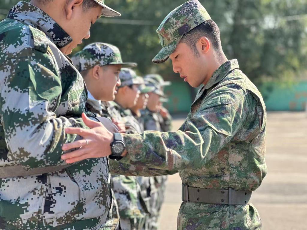 活动伊始,健康管理学院提前对接启智学校,详细了解孩子身体状况,量身定制“低强度、高适配”训练方案,准备好应急药品包,确保训练安全有序。军训正式展开,教官采用“口令+手势”的方式教授基础队列,面对孩子的特殊情况,及时调整节奏,以鼓励性语言陪伴孩子们参与训练。期间还融入红歌对唱环节,党员们与孩子们一同唱响红色旋律,在歌声中传递积极向上的精神。仿真枪演示让孩子们充满好奇,在轻松氛围中进行安全教育。体智能训练则针对特殊儿童特点,提升他们的身体协调性与活力。