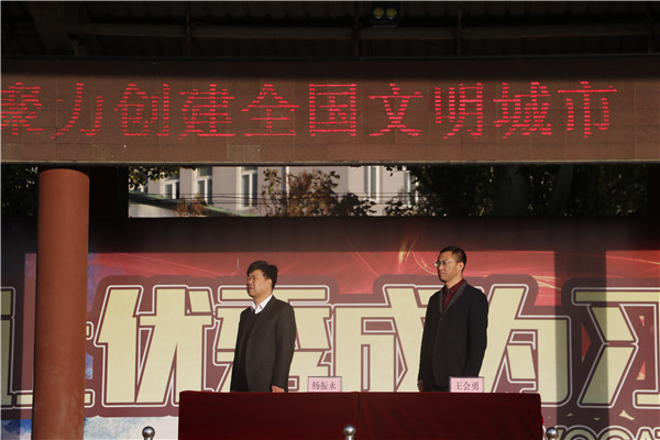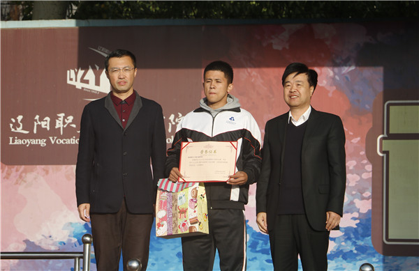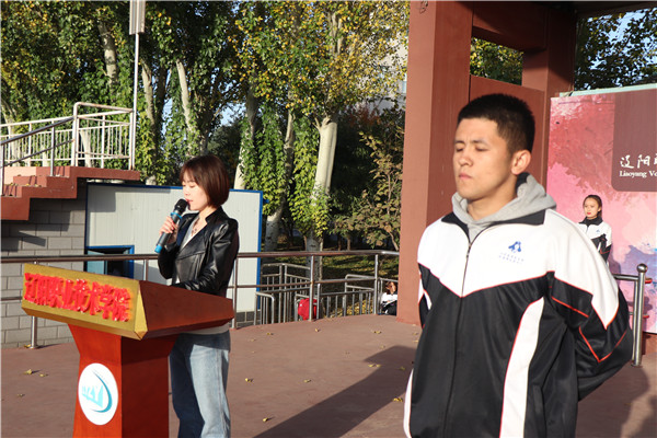 1021日早,校团委在运动场举行第九周全校升旗暨马拉松赛事表彰大会,参加此次大会的领导有校长王会勇,党委副书记杨振永,行政部门相关领导,各二级学院领导以及全体在校生。此次大会旨在向全校通报我校志愿者在辽阳市首届国际马拉松比赛中做出的突出贡献并表彰我校在十公里马拉松比赛中获得季军的新疆籍学生艾力,王校长和杨书记共同为艾力同学颁发证书和奖品,由团委副书记柏心怡致颁奖词。希望通过此次大会,能够激励全体同学向艾力同学学习,积极参加体育锻炼,养成健康文明的生活方式,练就强壮的体魄,为母校、为祖国的明天建设贡献出自己的一份力量!