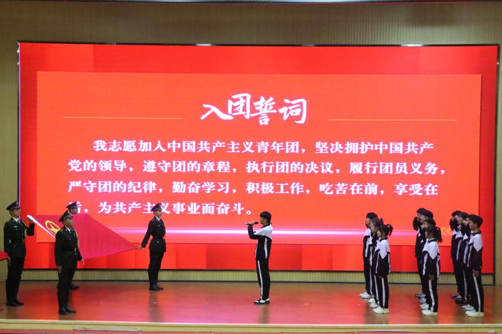 在鲜艳的共青团团旗下,校学生会于利群同学带领2022年新发展团员代表在团旗下庄严宣誓,嘹亮的声声誓言将化作日后激励团员青年们学习和生活中不断向前迈进的强大动力。
